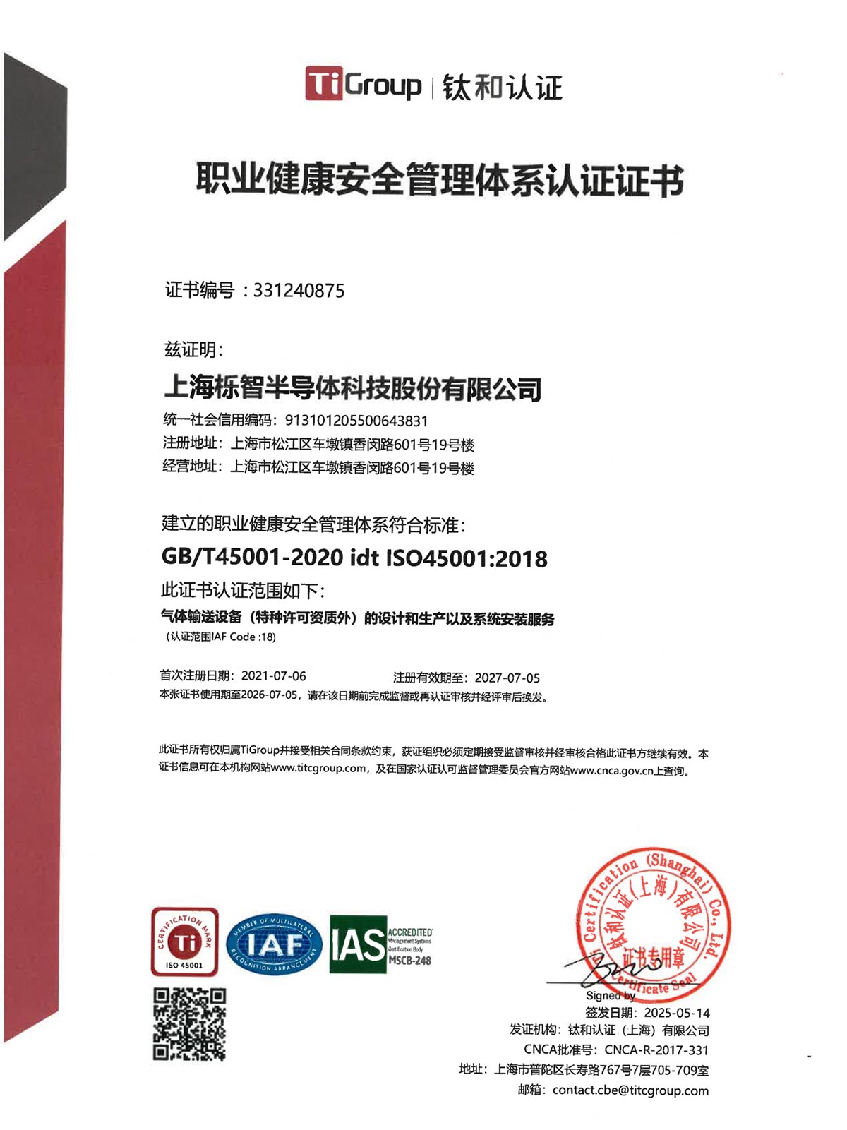 上海栎智半导体科技股份有限公司作为国家高新技术企业(证书编号:GR202131001034)栎智科技自2021年11月获批以来,持续在电子级气体输送系统领域开展技术创新高新技术企业认定管理工作网。