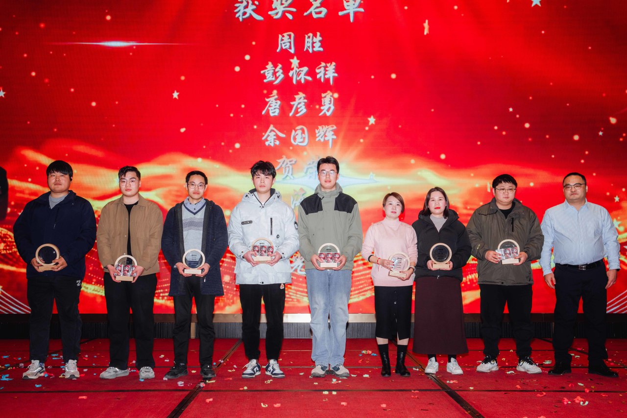 年度盛典为2024年对公司作出突出贡献的优秀个人和团队进行表彰和颁奖,向每一位敬业爱岗,匠心实干的奋斗者致敬。销售部和设备技术组荣获优秀团队奖,方真、任如、曾志勇3人荣获最佳员工奖,刘玉福、张思勰等7人荣获优秀员工奖,周胜、彭怀祥等8人荣获进步奖。