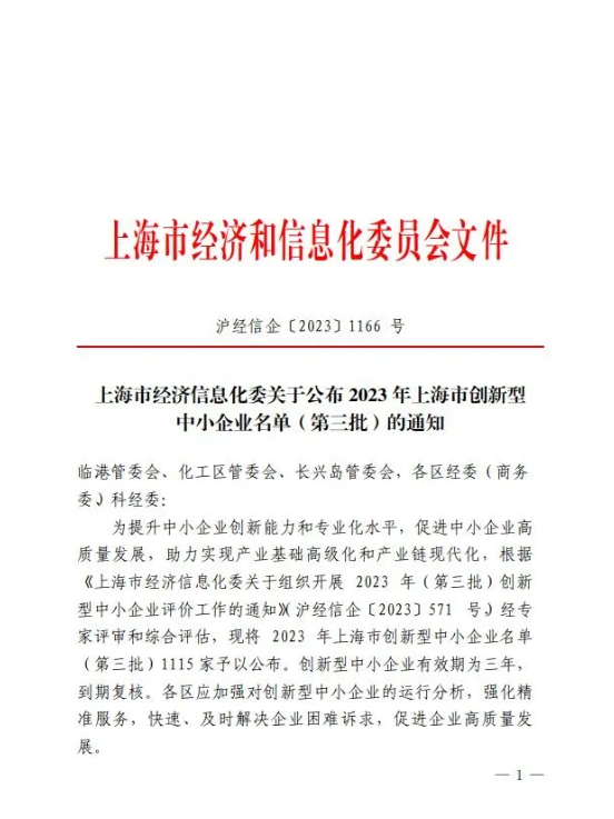2023年12月13日,上海市经济和信息化委员会公示了2023年上海市创新型中小企业(第三批)名单,上海栎智半导体科技有限公司成功入选,荣获上海市创新型中小企业认定。
